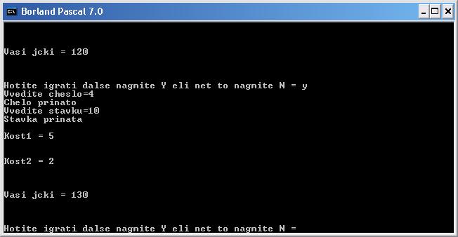 Если сумма выпавших цифр меньше 7 и играющий задумал число меньшее 7, он выигрывает сделанную ставку. Если сумма выпавших цифр больше 7 и играющий задумал число большее 7, он также выигрывает сделанную ставку. Если играющий угадал сумму цифр, он получает в четыре раза больше очков, чем сделанная ставка.